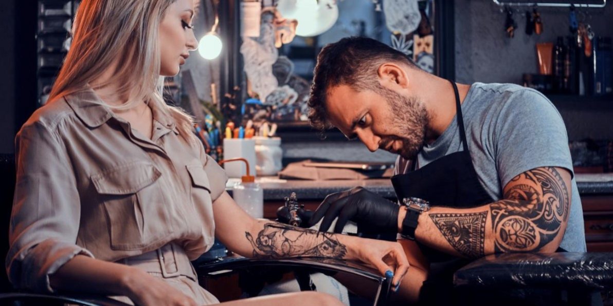 عکس تزئینی – مردی طرحی را روی دستان زنی خالکوبی میکند – Canva