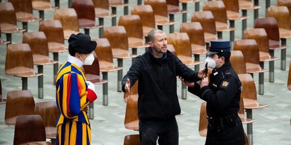 مردی که در جلسه هفتگی موعظه پاپ در واتیکان حضور یافته بود، با فریادهای اعتراض خود برای دقایقی نظم جلسه را بر هم زد.