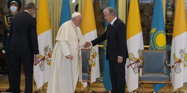 رهبر کاتولیکهای جهان بلافاصله بعد از ورود به قزاقستان با قاسم جومارت توکایف رییس جمهور قزاقستان دیدار کرده و سپس با مقامات ارشد و محلی و همچنین هیاتهای دیپلماتیک دیدار نمود.