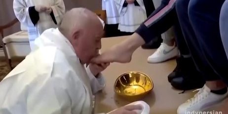 پاپ فرانسیس، رهبر کاتولیکهای جهان با حضور در زندانی در رُم ایتالیا، مراسم «پنجشنبه مقدس» قبل از عید پاک مسیحیان را برگزار کرد و پای شماری از زنان زندانی را شست و بوسید.