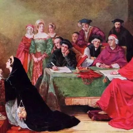 نقاشی «محاکمه ملکه کاترین» اثر هنری نلسون اونیل، حدود سال ۱۹۲۰، لحظهای را به تصویر میکشد که کاترین…