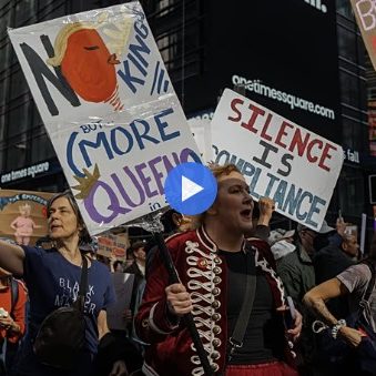 Copyright AP Photo میلیونها معترض آمریکایی از گروههای سنی مختلف روز شنبه ۱۸ اکتبر برای مخالفت با آنچه…